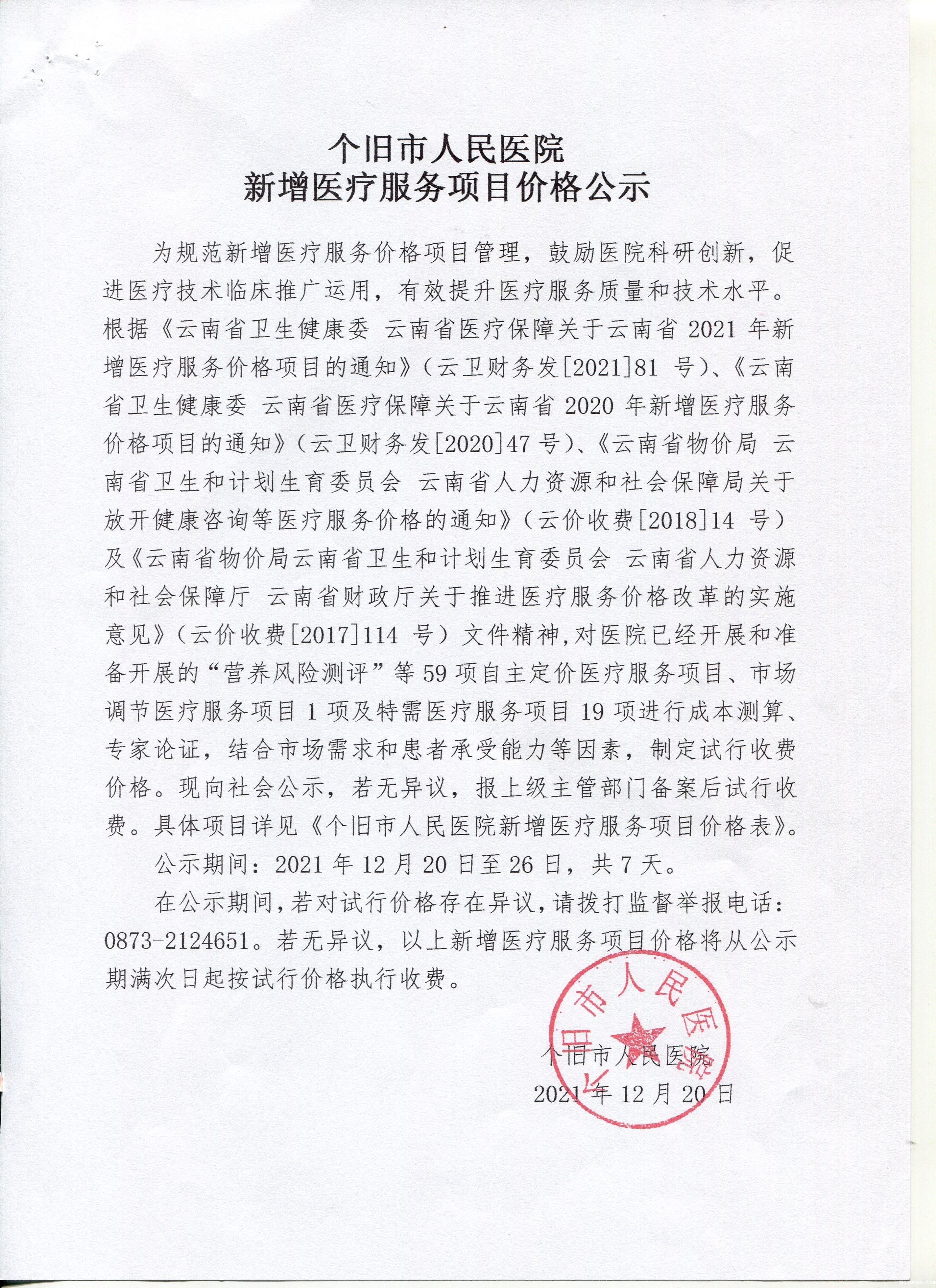 【价格公示】18luck国际新增医疗服务项目价格公示